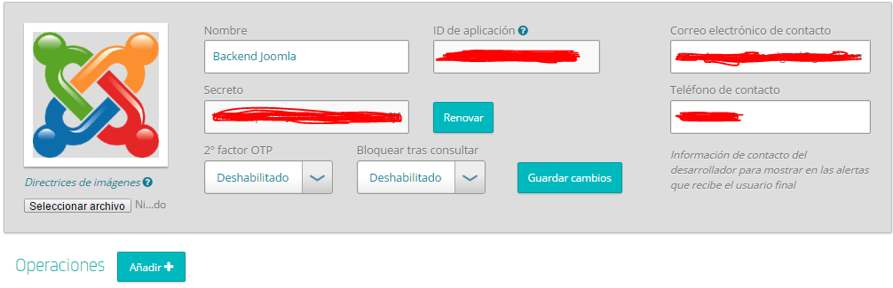 Crearnos una app en nuestra cuenta de desarrolladores de Latch, sólo le tenemos que dar un nombre a esta aplicación, una imagen (opcional), un correo electrónico y teléfono de contacto (ambos opcionales) y decir si queremos un segundo factor de autenticación (en nuestro caso lo dejamos deshabilitado) y el campo «Bloquear tras consultar» también lo dejamos en deshabilitado: